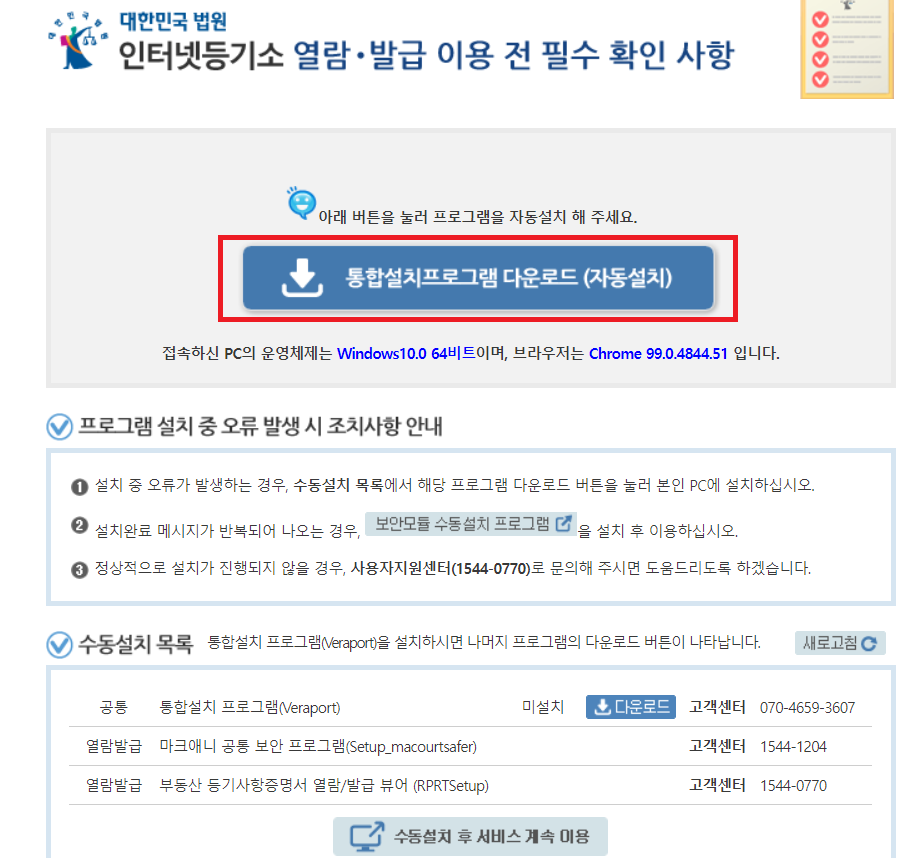 대법원 등기소에서 처음 방문이시라면, 보안 프로그램 설치를 필수적으로 해주셔야합니다. 기존에 미리 설치하신분은 프로그램 설치없이 바로 발급 할 수 있습니다.