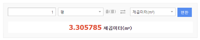 평수에 간단하게 3.3만 곱해주면 됩니다.