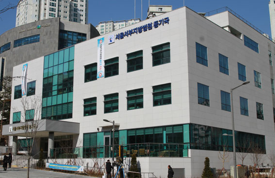 검색화면에 원하시는 건물의 주소를 입력하시고 '검색'을 클릭합니다. 그러면 아래의 그림처럼 부동산의 지번 검색 결과가 출력이 되며, 이때 원하는 주소를 선택합니다.
