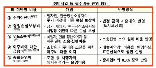주거이전, 영업 손실, 보상비, 명도소송비, 조합원 이주를 위한 금융비, 총회 운영비 등 정비사업을 하면서 통해 발생할 수 있는 비용을 추가 분양가에 반영할 수 있는 지침을 수립했다고 말할 수 있습니다.