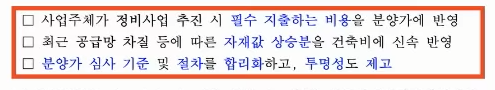 첫째,기존 판매 가격에서 완전히 반영되지 않았던 필수 비용을 분양가에 적절하게 반영하는 겁니다