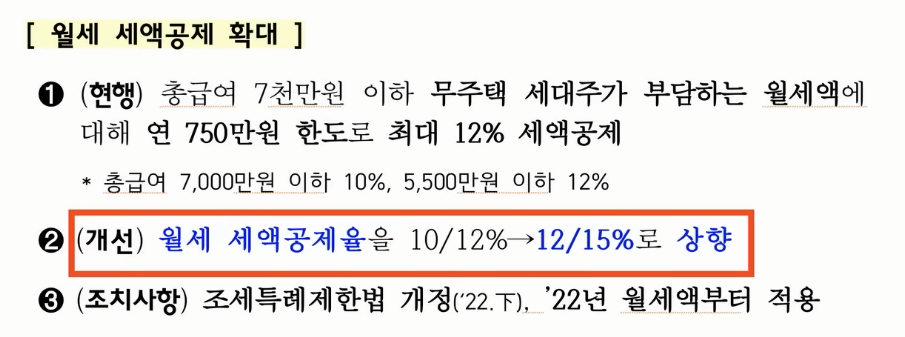 그리고 월세에 대한 세액공제율이 12%에서 15%로 상향 조정됩니다.